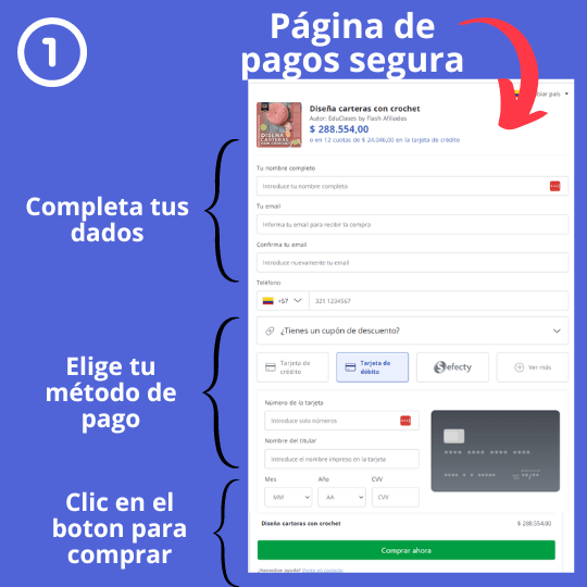 - Al dar clic en el botón «registrarte» (inscribirte, según el botón) serás redirigido a una página donde aparecerán todos los métodos de pago que aceptamos.